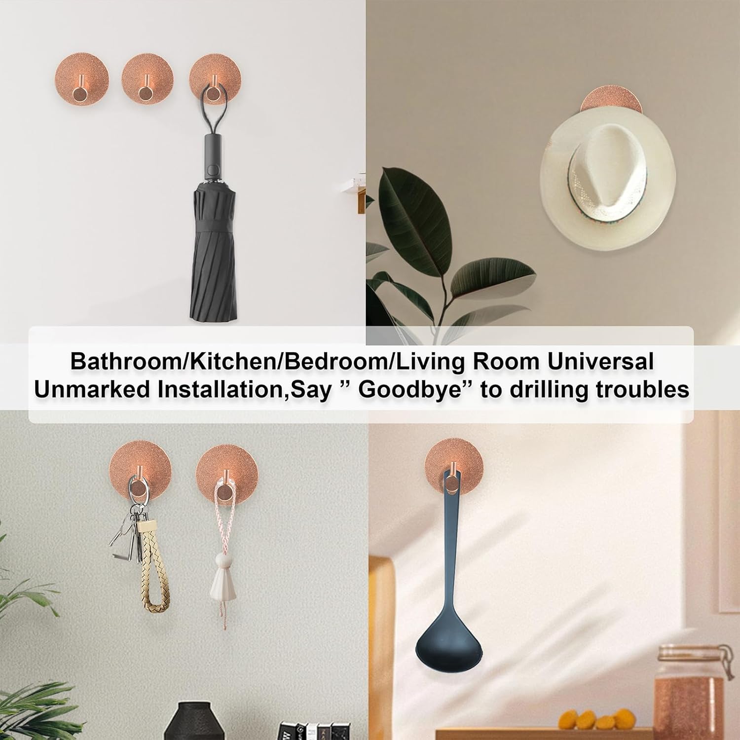 Aluminum Wall Hooks, No Drill Damage-Free Adhesive Hook, Product for Hanging Heavy Duty for Bathroom Kitchen Home (Single Round Rose Gold Hook, 4)