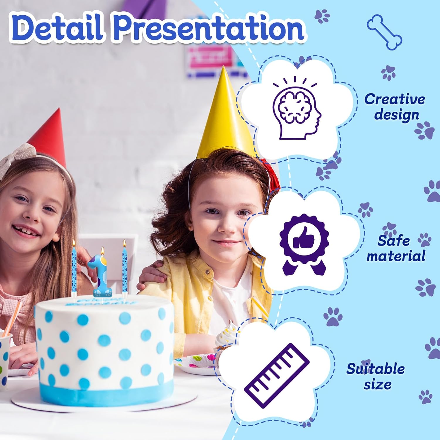 - Adorably Detailed Design: Featuring blue paw shapes, these candles burst with whimsy! The number-shaped design adds a festive touch, while the child-friendly color palette makes them a hit at dog lover-themed parties. Ideal for sparking joy in little pet enthusiasts!