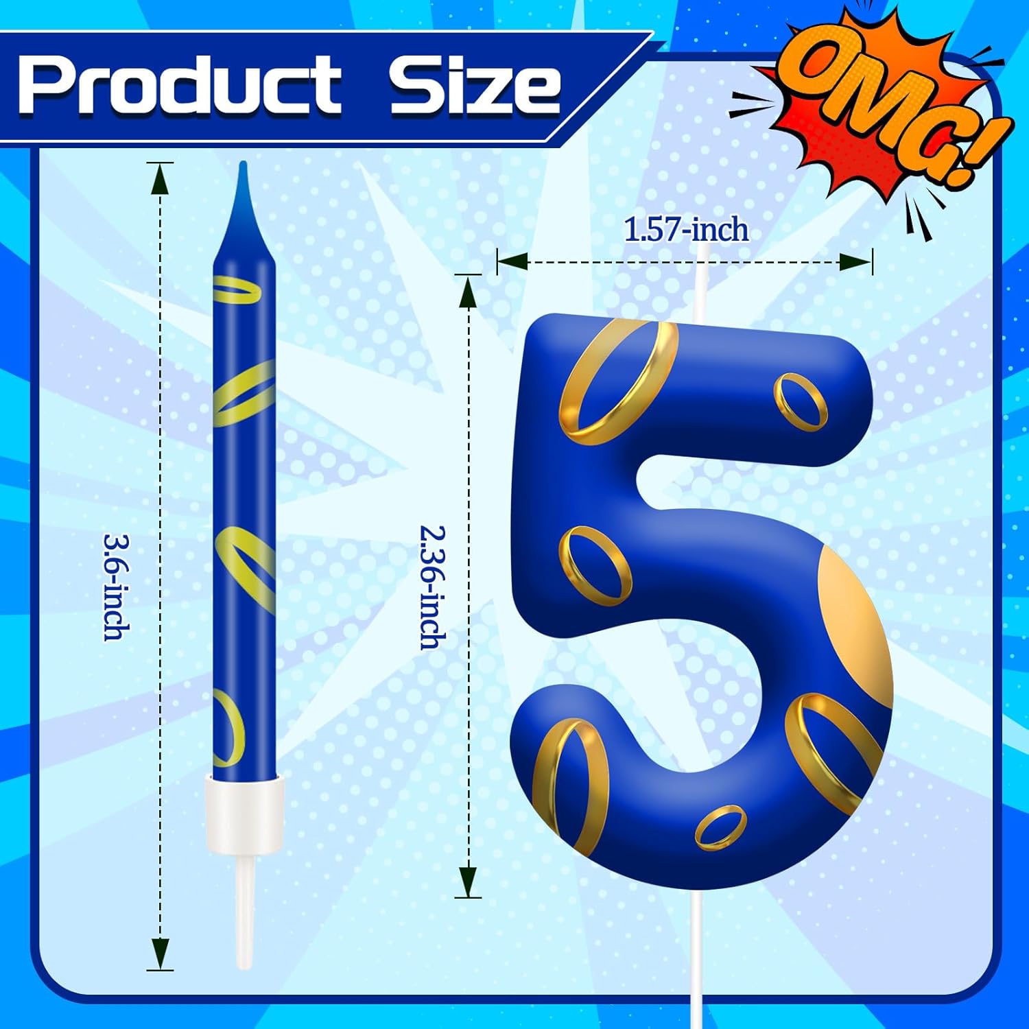 - Packaging: Each candle will be individually wrapped. This fashionable golden ring design pairs perfectly with the blue color, allowing you to easily personalize the candles for boys/girls' parties or theme decorations.