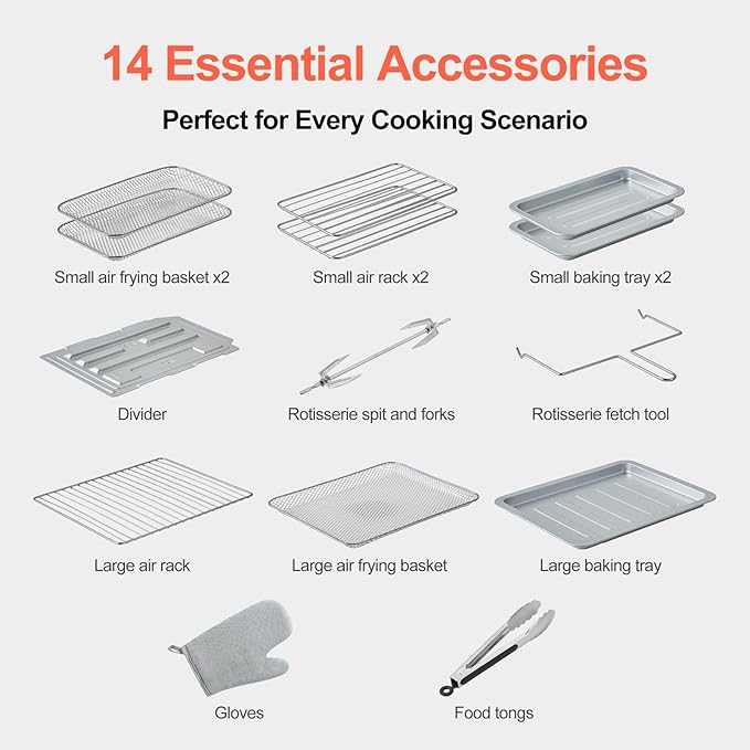 - 【500°F Heat & 360° Crisping】Take flavor further. With upper and lower heating elements plus dual convection fans, this airfryer toaster combo reaches up to 500°F for faster, crispier, and more even results. Enjoy golden fries, juicy rotisserie chicken, sizzling steak, and more—cooked to perfection every time.