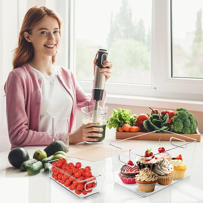 Clear Plastic Storage Bins 8 Pack - Pantry Organizers and Storage, Fridge Organizer Containers for Kitchen, Cabinet, Freezer, Bathroom, Clost, Home Organization