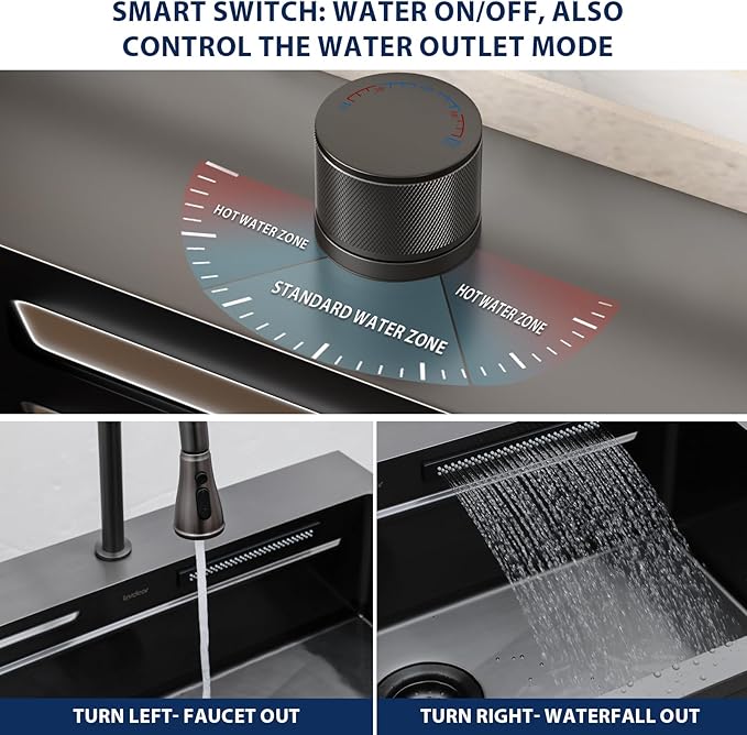 - Stainless Steel Kitchen Sink Construction: This 33 waterfall kitchen sink is made of premium T-304 stainless steel 16-gauge construction and black finished for long time use. The black drop in kitchen sink is made of nano technology, nano graphic layer is corrosion resistant, rust resistant, easy to clean and maintain, the smooth nano surface ensures long-lasting life of the topmount sink