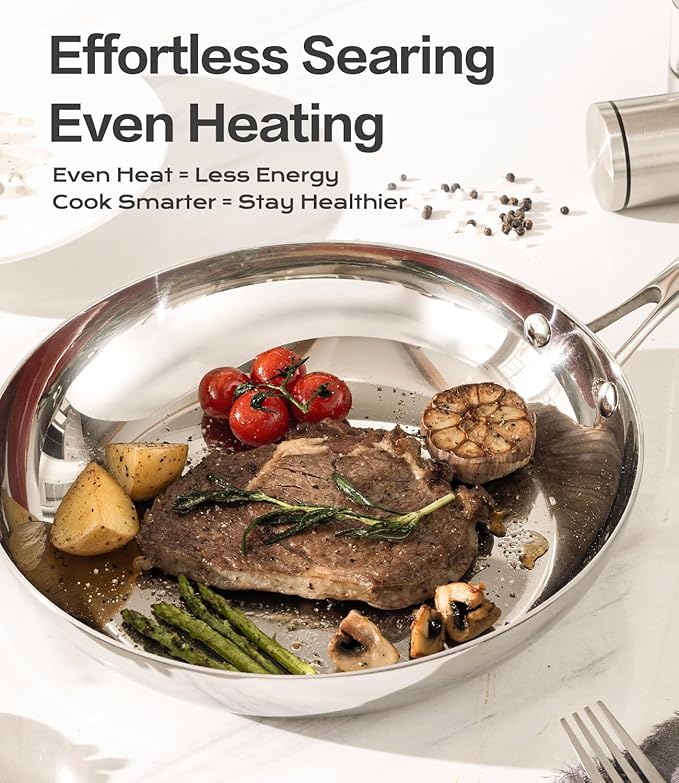 - 【Pan & Lid Included – All In One Set】Get cooking right out of the box! Useluck Tri-ply Stainless Steel Frying Pan comes with a matching Stainless Steel Lid. From eggs and pancakes to steak and stir-fries, it's your complete kitchen solution—the only frying pan you'll ever need.