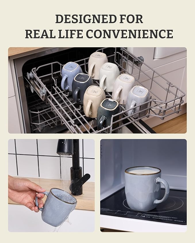 - 【Dishwasher and Microwave Safe】 Famiware Stoneware coffee cups for the kitchen are made of premium stoneware. Each plate and bowl is dishwasher and microwave safe