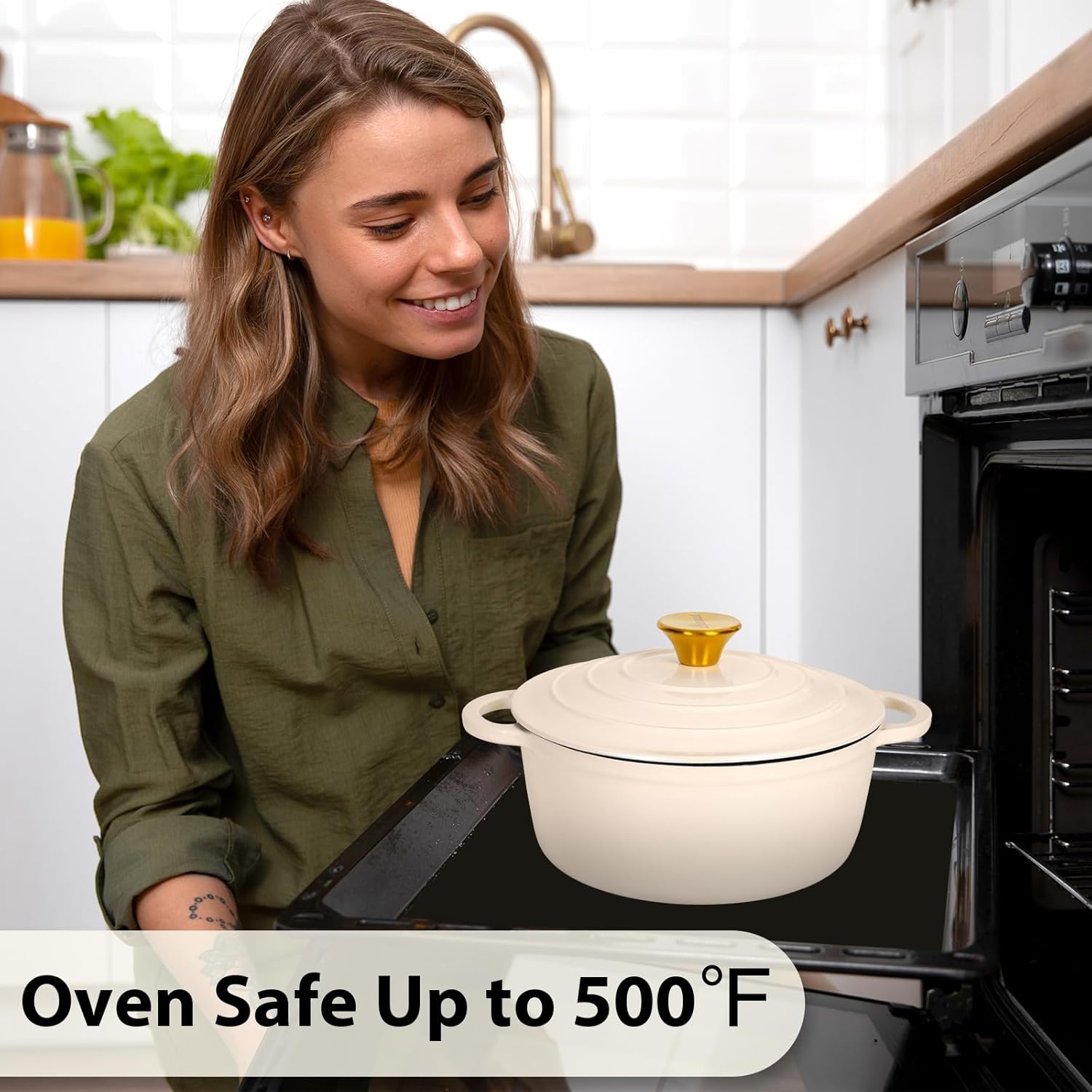 Romswi Enameled Cast Iron Dutch Oven Set - 3qt & 5.5qt Dual Combo - 7-Layer Professional Grade Dutch oven pot with lid - Oven Safe for Braising, Stews, Roasting, Bread Baking - White Bread Dutch Oven