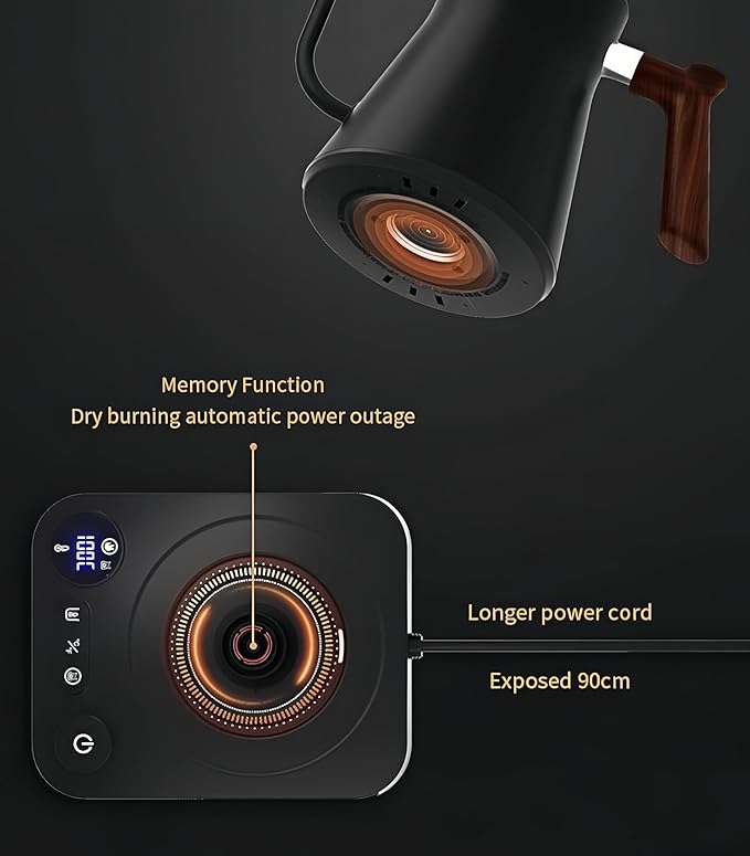 - 【Rapid Boiling Technology】Powered by a high-efficiency heating element (1200W), Smart gooseneck kettle boils water in record time, saving you energy and convenience. Perfect for busy mornings or quick refreshments