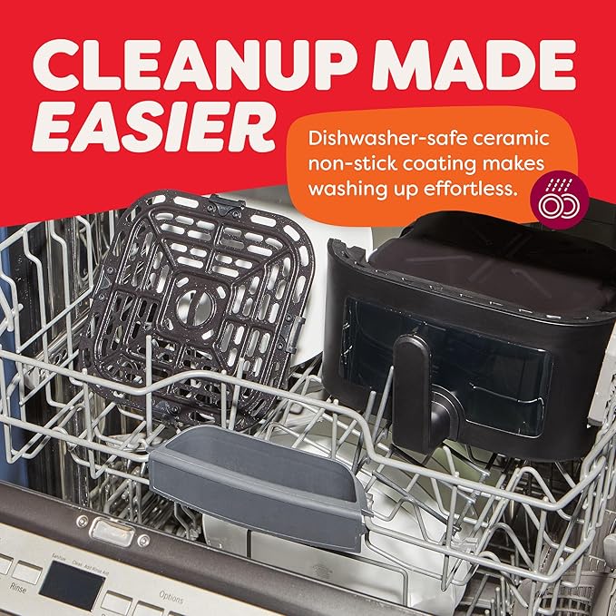- Quick Cleanup: No more fighting about who has to do the dishes. The dishwasher-safe, non-stick air fryer basket make washing up effortless