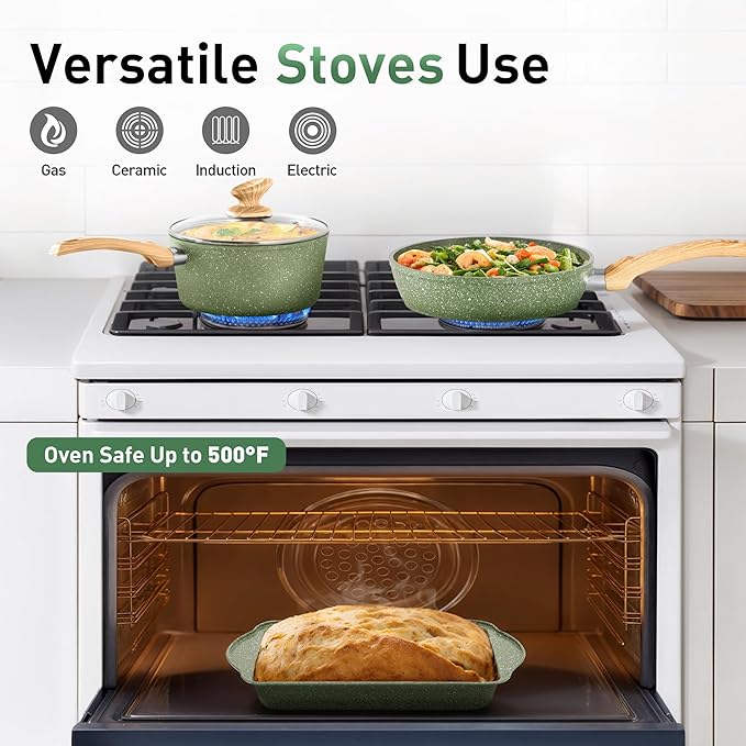 - Non Toxic Cookware Set - Granite nonstick surface, free of PFOA, PTFE, PFAS, PFOS, lead, cadmium and other toxic substances that can leach into food