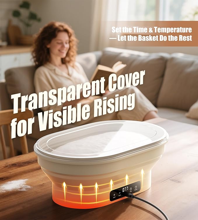 - Detachable Heating Module: Never worry about electric cleaning issue!. The heating base of banneton bread proofing basket detaches in seconds, and the silicone banneton basket is hand wash and dishwasher safe—so you enjoy the benefits of electric proofing without the hassle of deep cleaning.