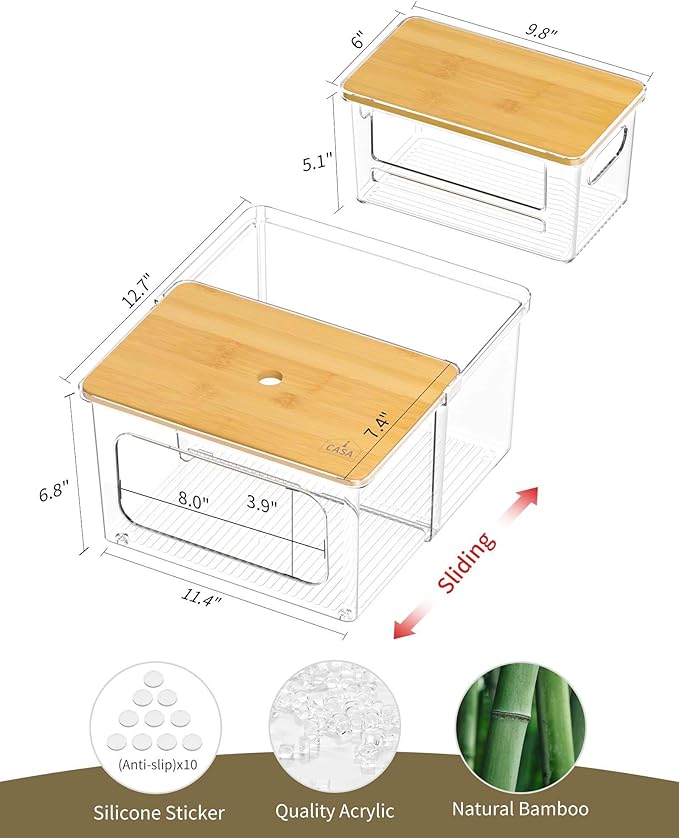 - Premium Acrylic & Bamboo Materials: Made of crystal-clear scratch-resistant acrylic for visibility + natural bamboo lids that durable for kitchen/pantry/laundry room use.
