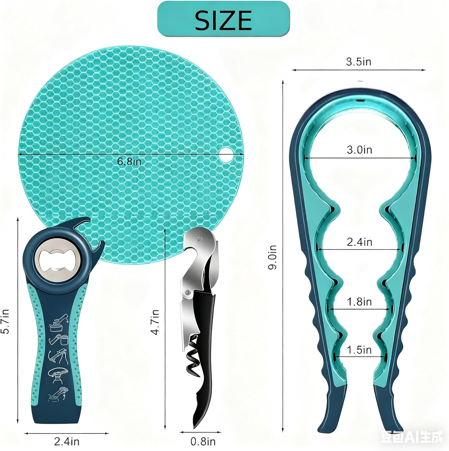- ✔Packaging information: You will receive a 4- in- 1 Jar opener, a 5-in-1 Bottle operer, Non Slip Jar Opener Gripper Pad and Wine Opener. These tools can be easily stored or hung anywhere without regular maintenance, reusable and useful, It is an indispensable multifunctional kitchen tool in life, enough to meet your daily family needs; it can also be used as a great gift for parents, grandparents, girlfriends, other colleagues and friends.