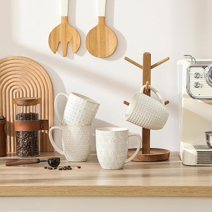 - Elegant Embossed Design – 4 Unique Patterns: Each mug in the Lydia collection features a beautifully raised motif, offering four distinct designs that bring charm and personality to your daily routine.