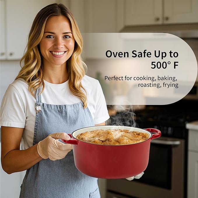 Enameled Cast Iron Dutch Oven Pot with Lid, 5.7 Quart Dutch Oven for Bread Baking, Oven Safe up to 500° F, Suitable for Bread Baking, Braising, Roasting, Stews, Red