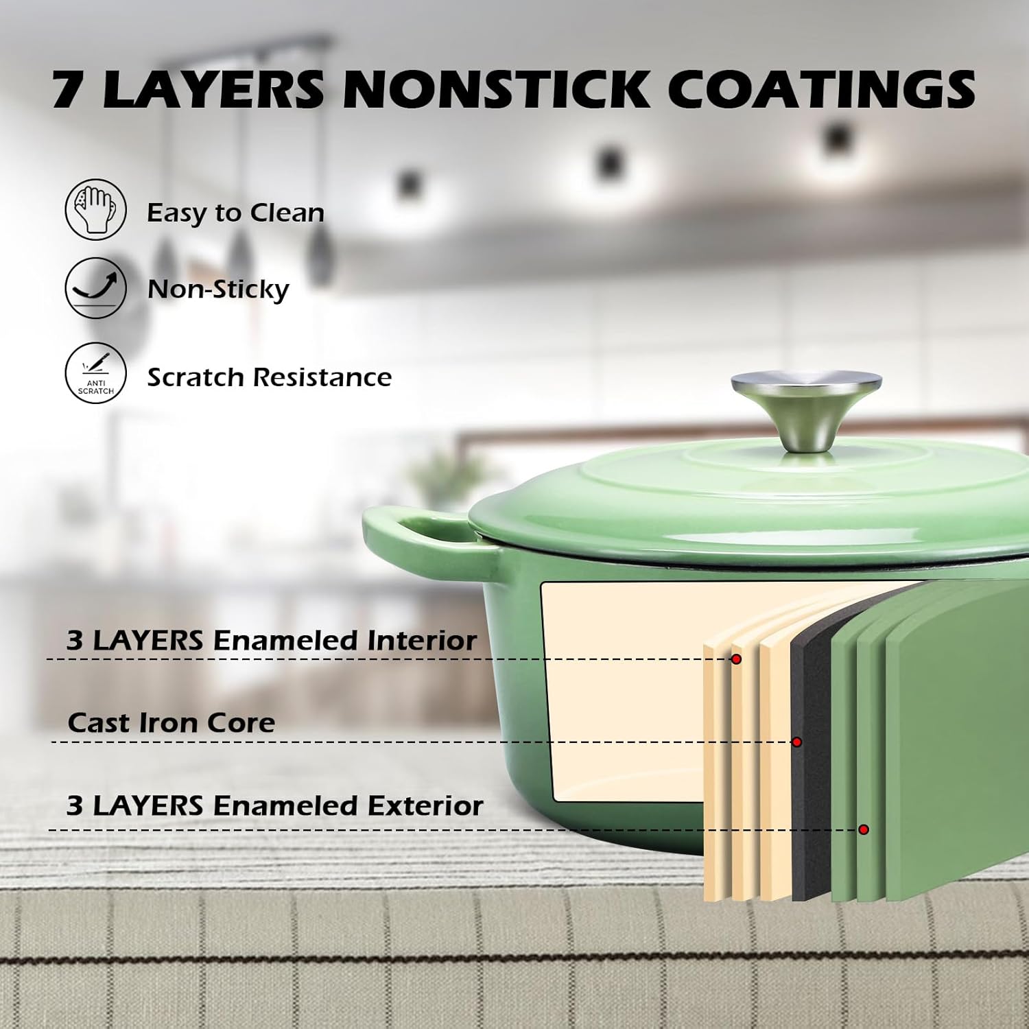 3QT Dutch Oven Pot with Lid, Leonyo 3 Quart Enameled Cast Iron Dutch Oven for Sourdough Bread Baking, Heavy Duty Cookware for Braising, Stews, Roasting, Pistachio Green