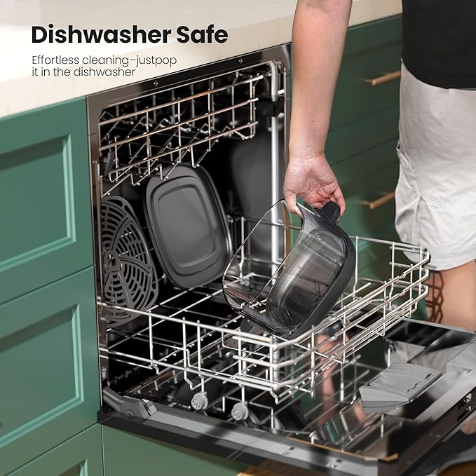 - 【Dual Versatile Bowls】Switch between the 2.6QT for solo meals and the 4.7QT for family dishes or party sharing. Ideal for small kitchens, this portable air fryer adapts to everyday cooking and weekend gatherings with ease. Made of durable, clear non-toxic glass — 100% PFAS-free, BPA-free, and odor-free — for safe, healthy meals without any plastic aftertaste. Enjoy clean cooking with total peace of mind