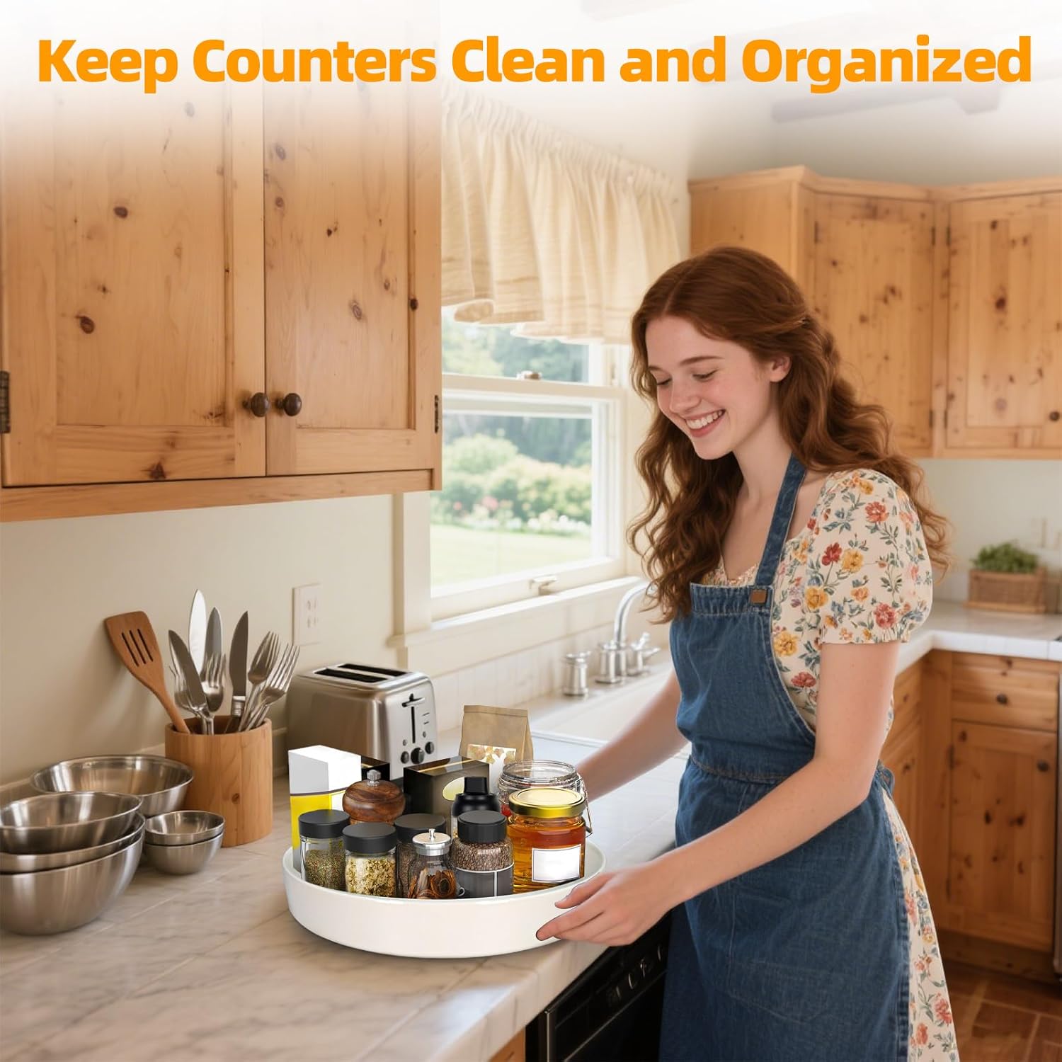 - Multi-Purpose Turntable Organizer: Perfect as a lazy susan for cabinet, bathroom lazy susan organizer, or spinning spice rack. Great for countertops, pantries, vanities, and dining tables.
