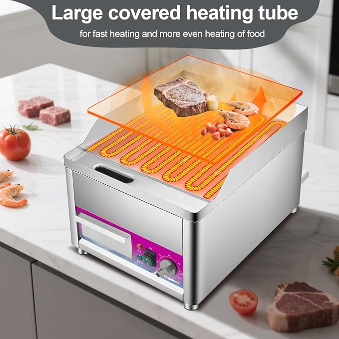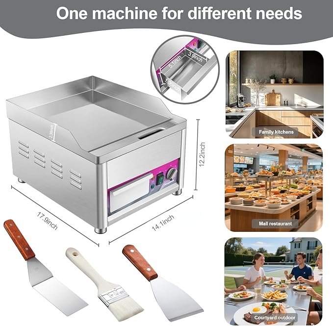 - Wide range of applications:This electric grills can be used in both commercial restaurants and home kitchens, and it can help you create delicious omelettes, steaks, fish, pancakes, vegetables, fried rice, panini, pork chops, bacon, sandwiches, and more, so everyone can be a chef!