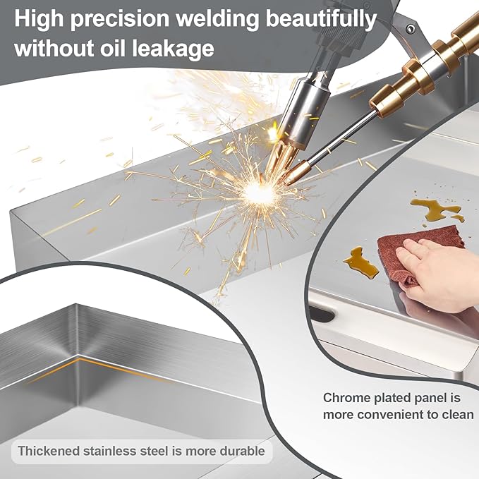 - Excellent workmanship:this stainless steel griddle is made of thickened food-grade 304 stainless steel, which is more sturdy and durable, and a good heat dissipation system to ensure that the machine will not overheat, and upgraded 4 thickened and non-slip stainless steel feet at the bottom of the machine, which provide more stable support when working