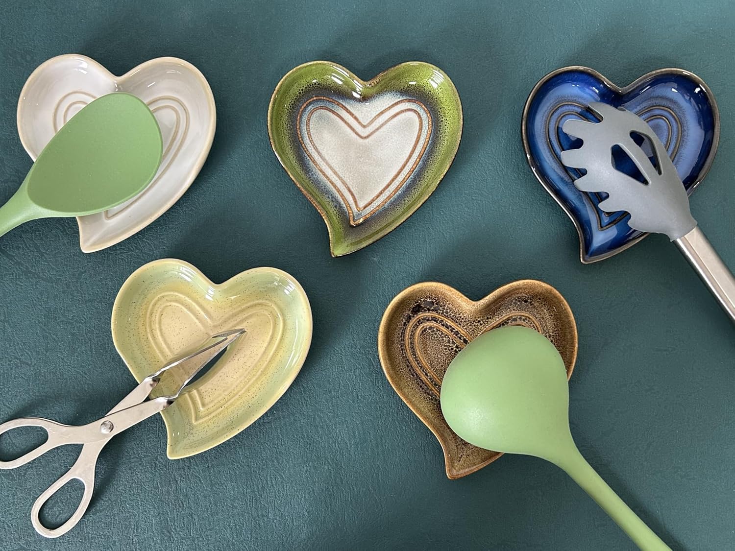 - 💕 【Designed and Decorative】: The ceramic spoon rest for stove top is heart shaped. The unique designed spoon rest cute is perfect addition and decoration to your kitchen counter, stove top, coffee bar and dinning room.