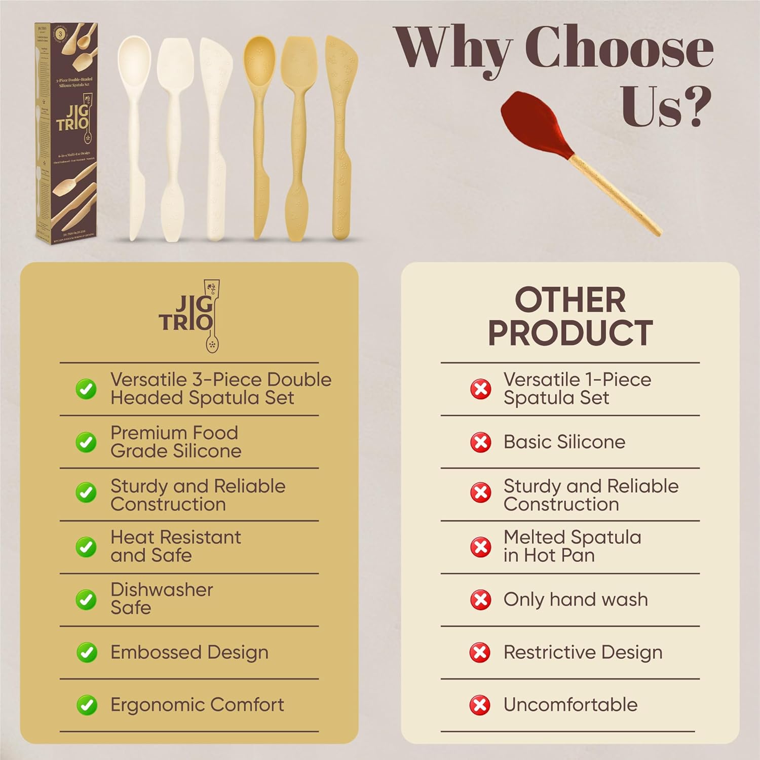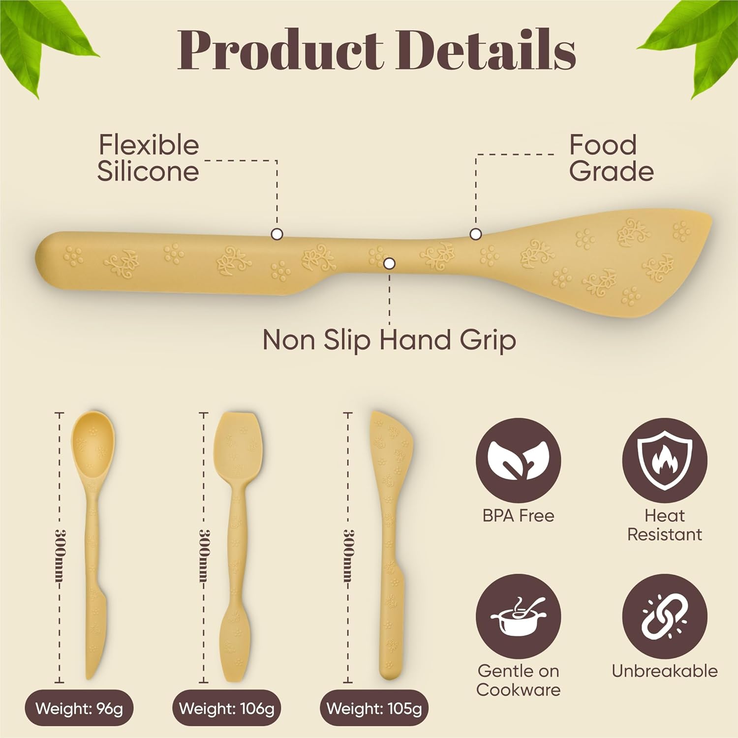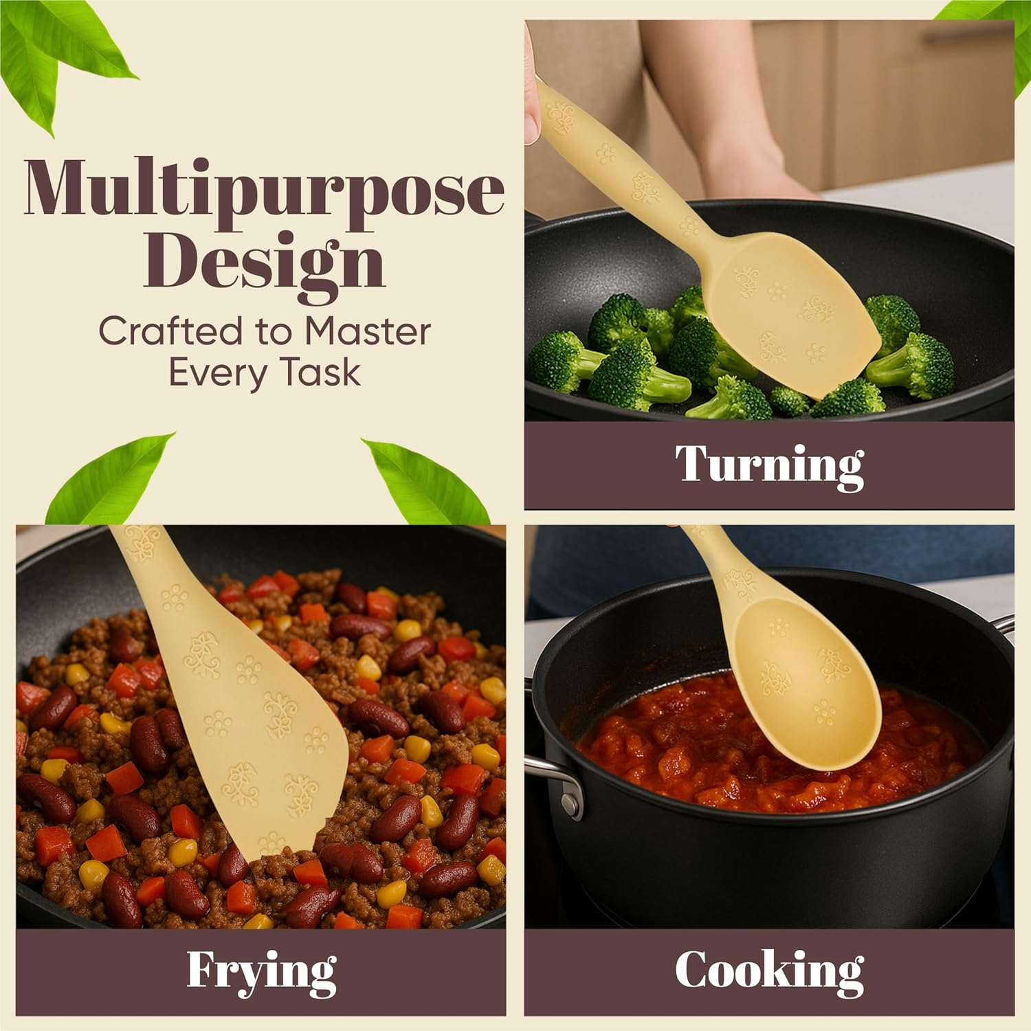 - Durable & Heat Resistant – Made with premium BPA-free silicone that withstands high heat. Gentle on non-stick cookware, strong enough for daily cooking and baking.