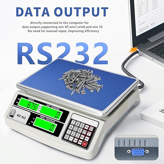 - 【RS232 Interface】: Say goodbye to data hassles! The RS232 port on the counting scale allows easy connectivity with computers, printers, and other compatible devices and systems, enabling data sharing. It ensures fast and stable transmission of weighing data, automates data transfer, reduces manual intervention, and saves time and costs.