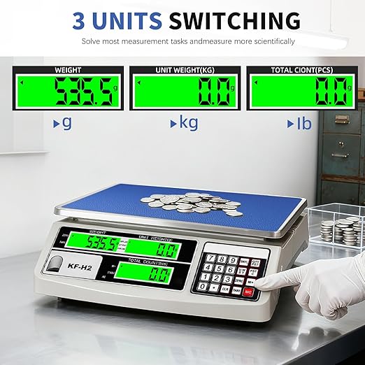 - 【Stainless Steel + ABS】: The industrial counting scale is made with a large stainless steel weighing pan and an ABS body, offering wear resistance and suitability for high-frequency use. It maintains excellent performance even in harsh environments, extending the equipment's lifespan. Its surface resists dirt buildup, making it easy to clean. Additionally, it is recyclable, reducing environmental pollution, and is harmless to both humans and the environment.