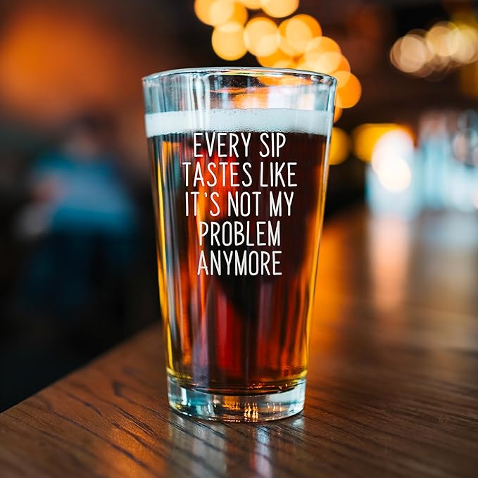 - Premium Quality Materials: Crafted from lead-free, durable glass, this pint glass offers unmatched clarity and strength. It’s built to last, with a thick base that feels solid in your hand. Enjoy your beer without worrying about fragility or breakage. The precise laser engraving ensures the funny text won’t peel, fade, or wash off over time.