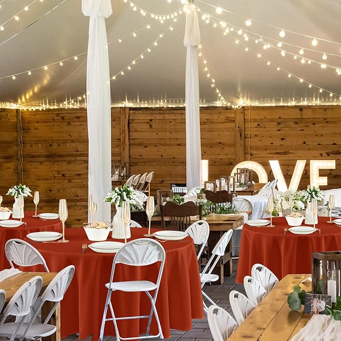 Fitable 8 Pack Round Tablecloths: Stain Resistant Wrinkle Free Fall Table Clothes, Washable Reusable Polyester Table Covers for Wedding Thanksgiving Party Birthday Banquet Reception(Rust, 84 Inch)