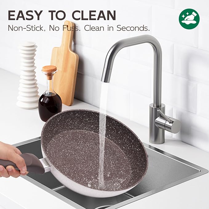 - ✅ Dual-Layer Non-Stick Technology for Effortless Cooking: Our ceramic cookware set combines a PFOA-free ceramic coating with a smooth, ultra-durable base. From sticky sauces to delicate eggs, food glides off effortlessly—no residue, no scrubbing