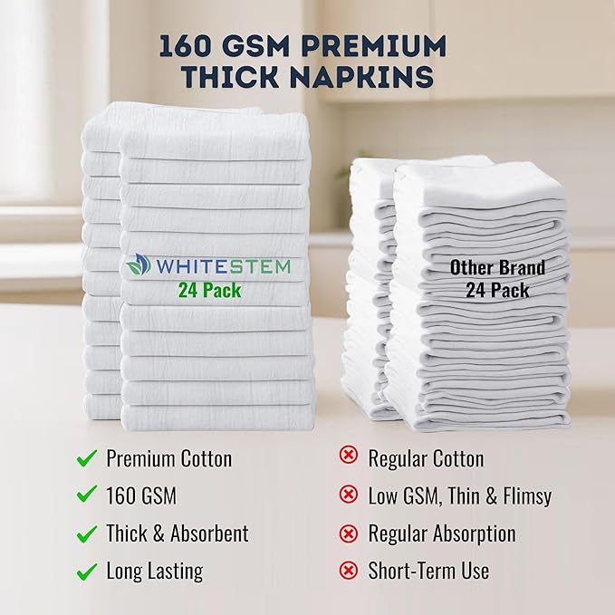 Flour Sack Towels 100% Cotton Dish Towel Reusable Baking Cloth for Bread Dough, Baguettes, Pastries, Machine Washable, Kitchen Towels for Cleaning – Set of 24 (18"x18") - White