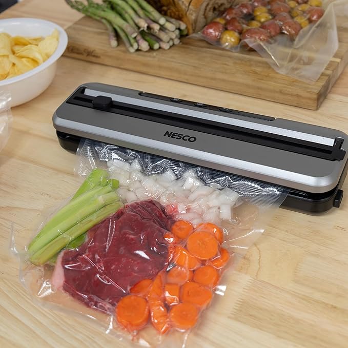NESCO VS-74S Vacuum Sealer Machine – 3 Modes, Built-in Cutter, Soft Vacuum for Fragile Foods, External Canister Port, 20 Vacuum Bags Included, Compact Design
