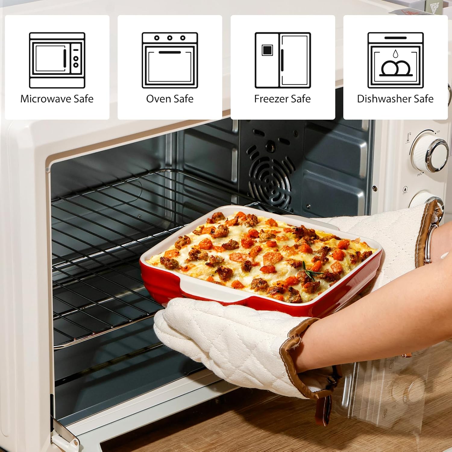 - 【WIDE RANGE OF USES】This versatile dish does it all: bake, roast, reheat in the microwave, and store leftovers in the fridge. Its multi-device compatibility means you can go from oven to table to fridge without switching containers—simplifying meal prep and cleanup.