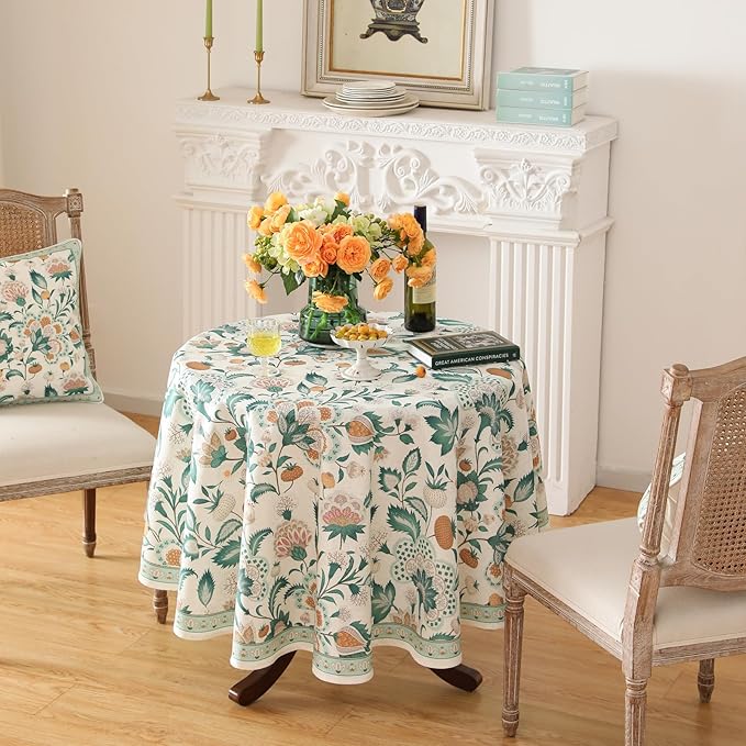 patdrea Designer French Table Cloth for Round Tables,Vintage Italian Floral Tablecloth,Country Summer Linen Tablecloth,Wrinkle Free Table Cover for Kitchen Dining,Christmas,Diameter 67"