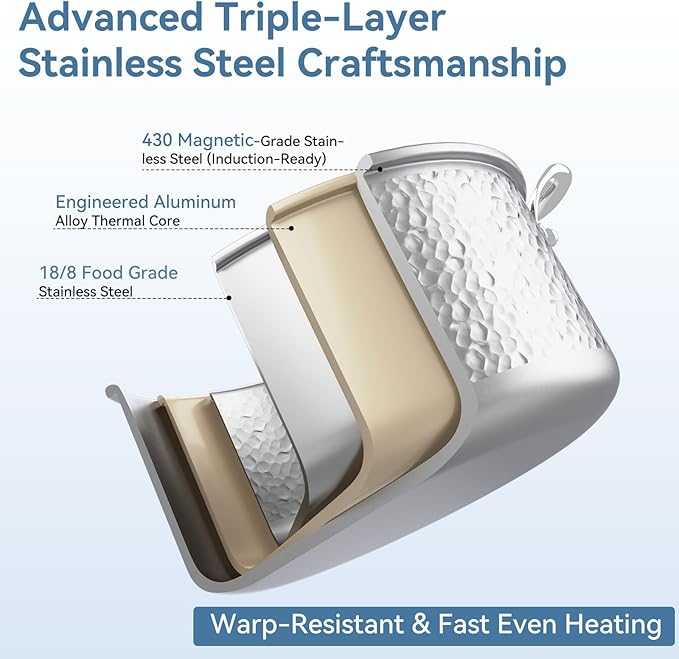 - ✅ Effortless Maintenance & Food-Safe Design: Simplify cleanup with a dishwasher-safe construction that resists stains and discoloration. The coating-free 18/8 stainless steel cooking surface ensures absolute food safety, preventing chemical leaching or metallic tastes. Naturally non-porous and rust-resistant for lifelong health-conscious cooking