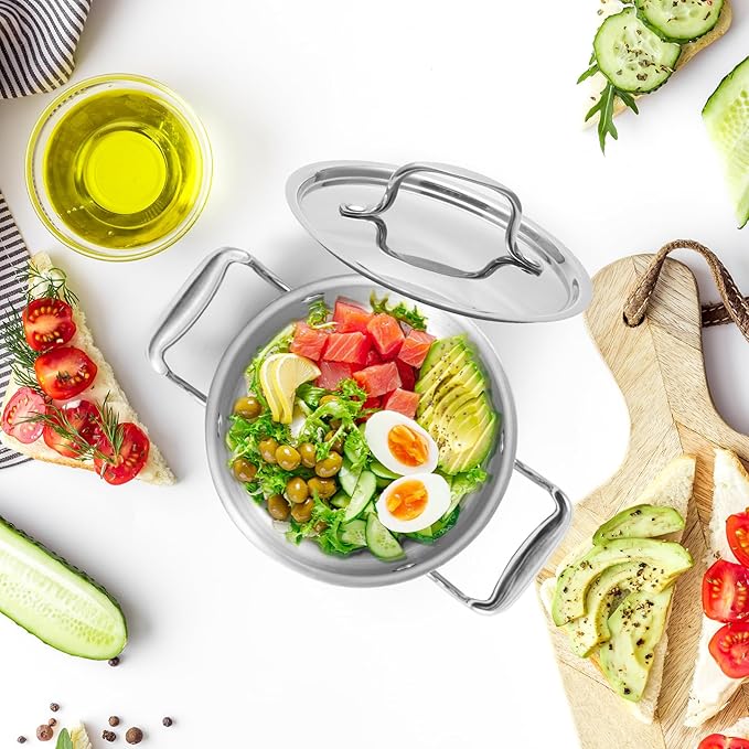 Tri-Ply Stainless Steel Stock Pot,1.8 Quart Sauce Pan with Lid, Induction Pasta Pot Compatible with All Cooktops, Small Cooking Pot for Boiling Gravies, Pasta, Soup, Oven & Dishwasher Safe