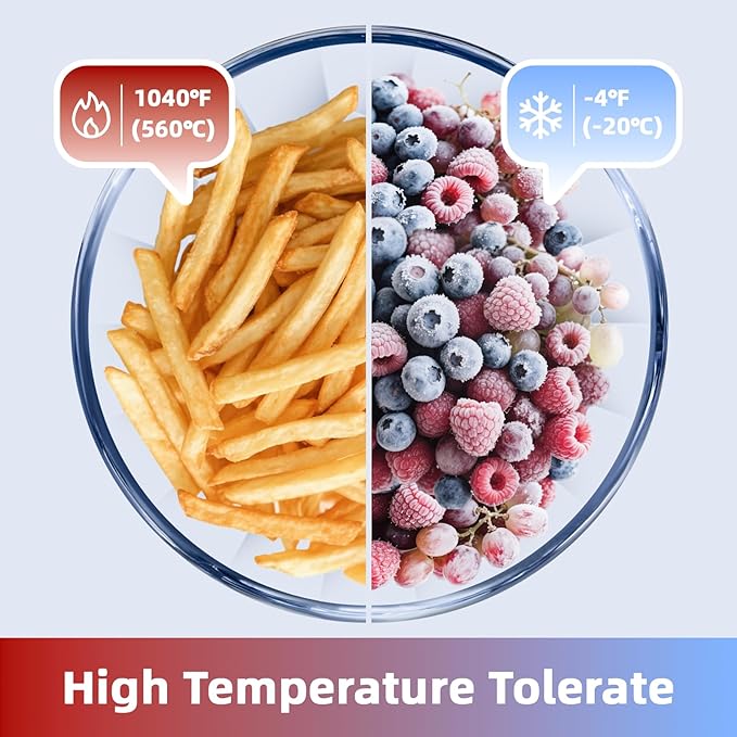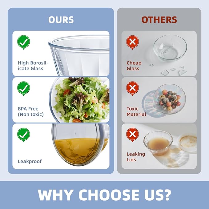 - Premium Food Grade Material: Bowls are made of high borosilicate material,thicker glass bowls, longer life span, lead & cadmium free, and tolerates -4℉-1040℉ (-20℃-560℃), access to microwave, oven, fridge, dishwasher. The lid is BPA free, safe and reliable, easy to clean.