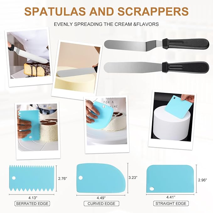 - š Create Stunning Decorations with Pro Tools: After baking, elevate your creations with a full range of decorating accessories: icing tips, spatulas, scrapers, couplers, and more. Everything you need for smooth frosting, beautiful patterns, and flawless finishing