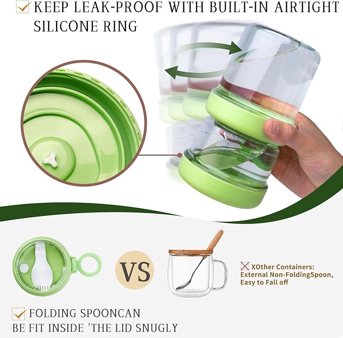 - LEAK-PROOF & VERSATILE FOR ON-THE-GO: Featuring tight-fitting silicone seals ring, our containers prevent leaks and keep your food fresh longer. Oats overnight container is suitable for overnight oats, cereal, salads, yogurt, fruit, milk, ice cream, coffee, etc. Overnight oats containers are safe to use in the microwave, dishwasher, freezer.