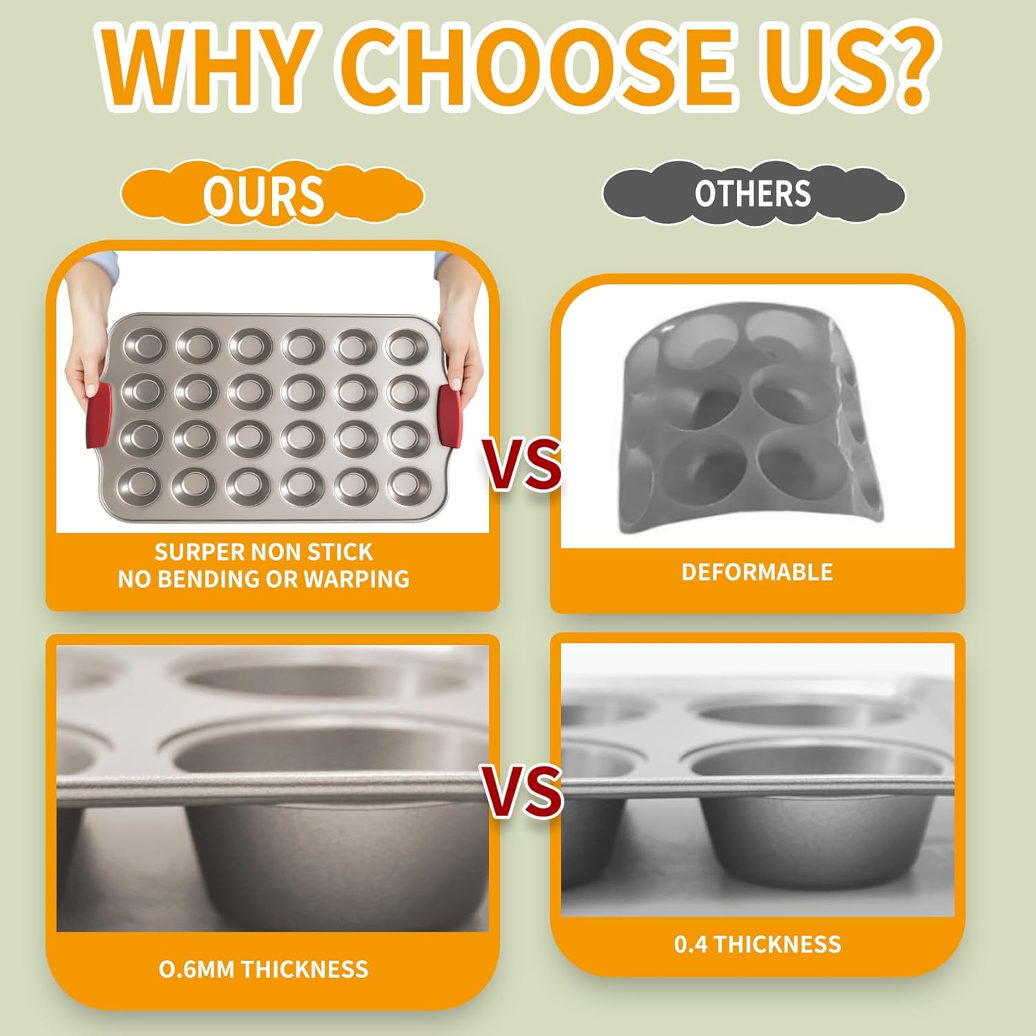- Suitable for Numbers Cooking Appliances - The durability of our non stick cupcake tin makes it suitable for use on numerous home cooking appliances such as your ovens, refrigerator and freezers without the fear of it from rusting.