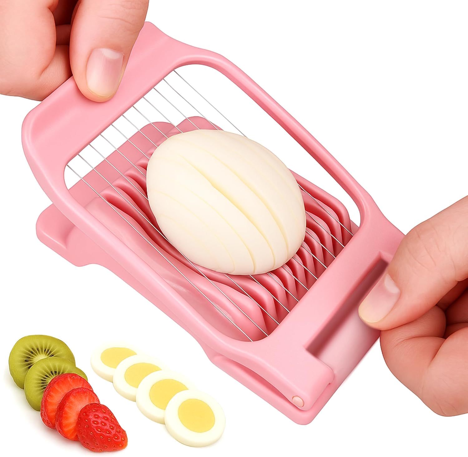 - ăFOOD SLICERăEgg Slicer is very suitable for cutting hard-boiled eggs(Strawberry, banana, mushroom, butter, cheese) into neat slices. Just put the food into the slicer and push it down. You will get neat slices every time