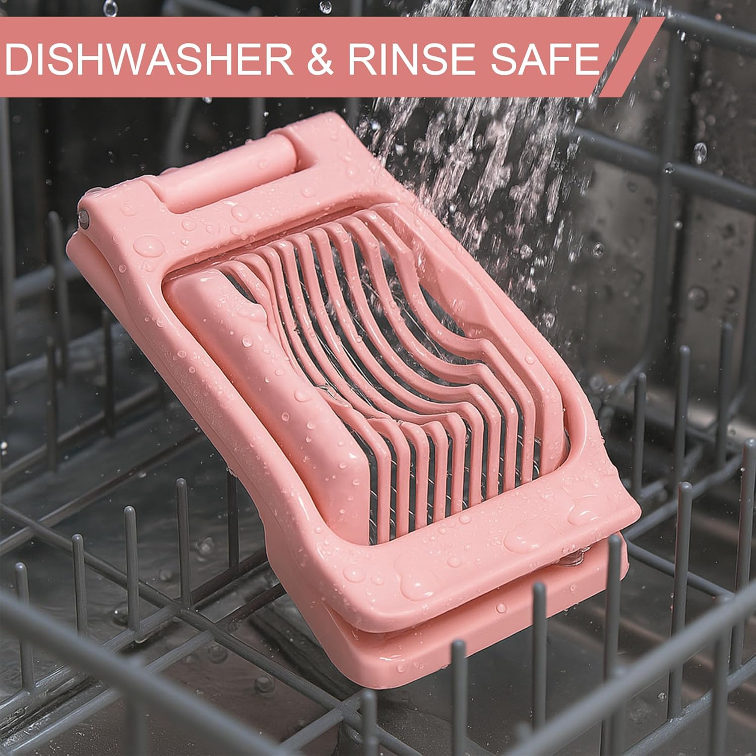 - ăEasy to CleanăThe base of the egg cutter uses a hollow design ,Simply rinse with water to easily remove food scraps and get a brand new egg cutter. Can be safely used in the dishwasher