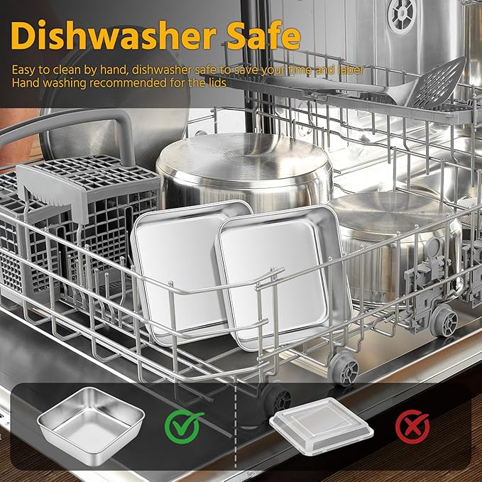 - DURABLE & LONG-LASTING: Sturdy baking pans are constructed by premium-grade and heavy gauge stainless steel, Deformation and rust resistant, More durable than disposable foil pans, Heavy duty for a long-lasting service life, Dishwasher Safe for the pans, Hand washing recommended for the lids