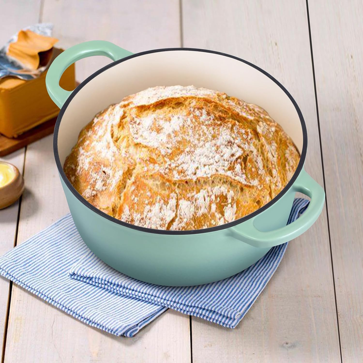 - SUPERIOR ENAMEL FINISH - Double-coated smooth enamel both inside and out resists staining, dulling and sticking, Increases durability and makes cleaning effortless, White interior allows you to monitor browning and cooking progress, Attractive enough to serve food directly from oven to table
