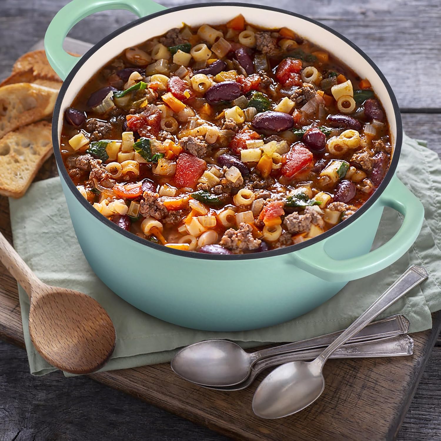 E-far 3 Qt Enameled Cast Iron Dutch Oven with Lid, Small Round Nonstick Dutch Oven Pot for Bread Baking Braising Stews Roasting Cooking, Heavy Duty, Induction & Oven Safe - Sage Green
