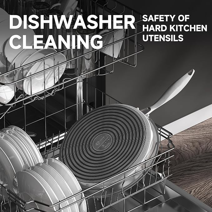 - 【BUILT TO LAST】 Incredibly designed for the everyday chef. The hardened etched pattern provides enhanced protection against direct contact with utensils, reducing the risk of scratches and extending the usage lifetime. Meet the demands of your busy kitchen. Dishwasher-safe.