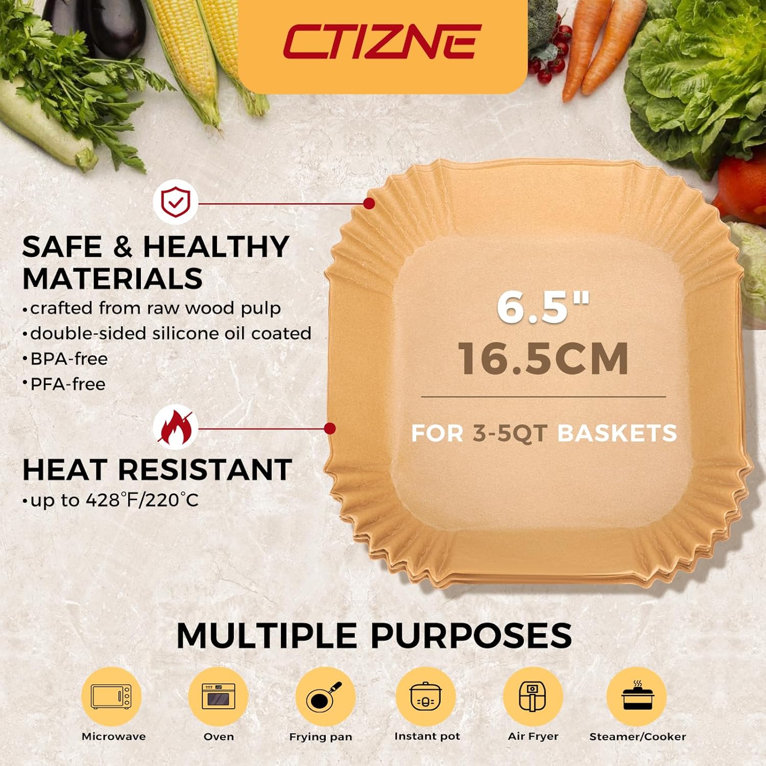 - Healthy Food Grade Material: Airfryer liners are made of 100% food-grade parchment and silicone oil coating. They are unbleached, BPA-free, PFAs-free, waterproof, oil-proof and non-stick. It can withstand temperatures up to 428°F.