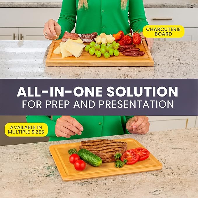 - FAMILY-SIZED VERSATILITY – At 15 inches, this glue-free bamboo cutting board strikes the perfect balance between compact and spacious. Ideal for chopping vegetables, carving meats, or plating cheese and charcuterie, it’s the all-purpose board every kitchen needs.