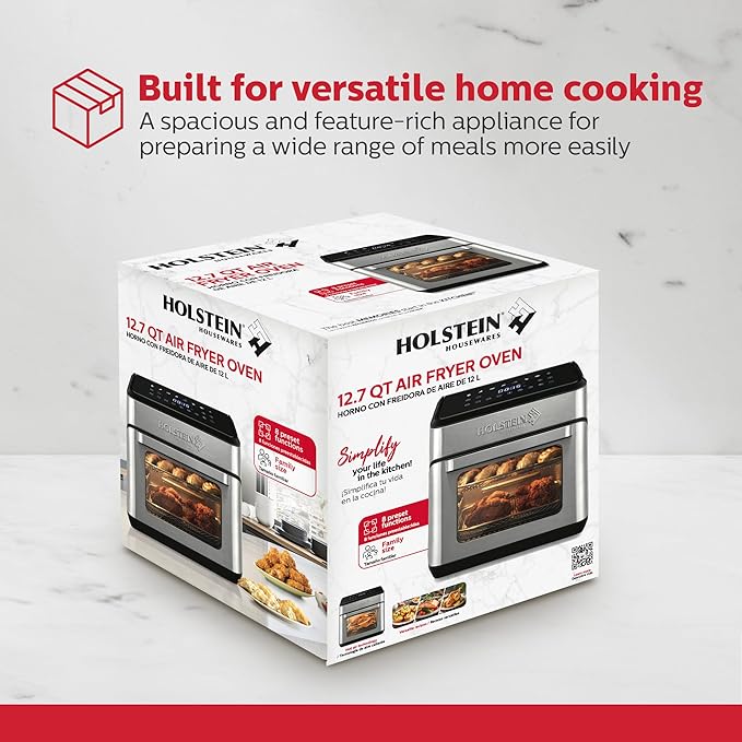 Holstein Housewares 12.7 QT Digital Air Fryer 8-in-1 with Hot Air Technology, Family Size, Viewing Window & Led Display. Air Fry, Bake, Grill, Dehydrate & Roast, Less Oil Use for Healthier Meals