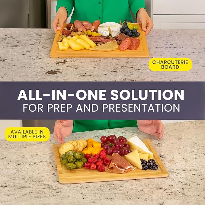 - COMPACT & VERSATILE – At 12 inches, this glue-free surface bamboo cutting board is the go-to size for quick daily prep. Perfect for slicing fruit, chopping herbs, prepping kids’ snacks, or serving cheese and charcuterie, it delivers big utility without crowding your counter.