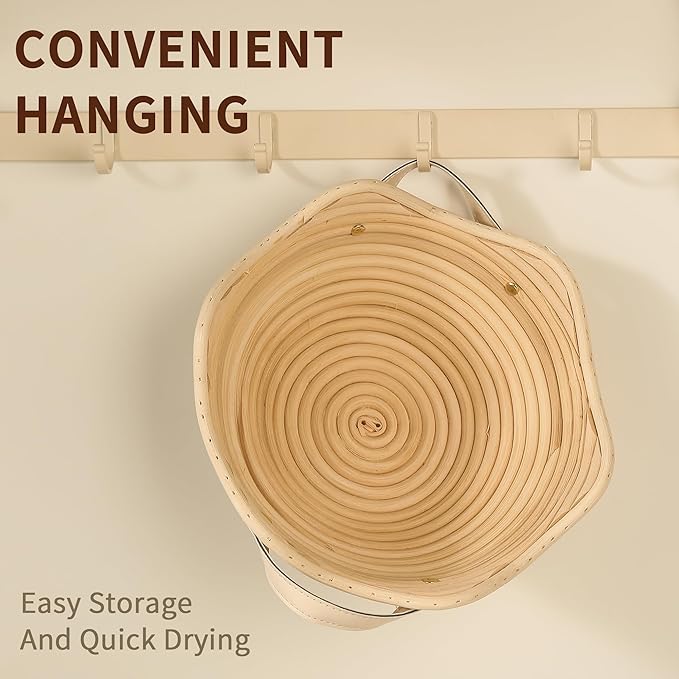 - Banneton Bread Proofing Basket for Artisan Bread – Made from natural rattan, this bread proofing basket helps your dough rise perfectly while creating beautiful spiral patterns for professional-looking loaves.